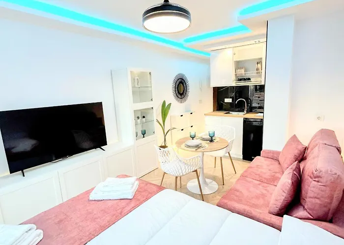 El Luxury studio Torremolinos Costa del Sol tiene una terraza y está situado a unos 1 km del Puerto Marina Benalmádena. Los huéspedes pueden relajarse en la piscina privada y darse un chapuzón refrescante.